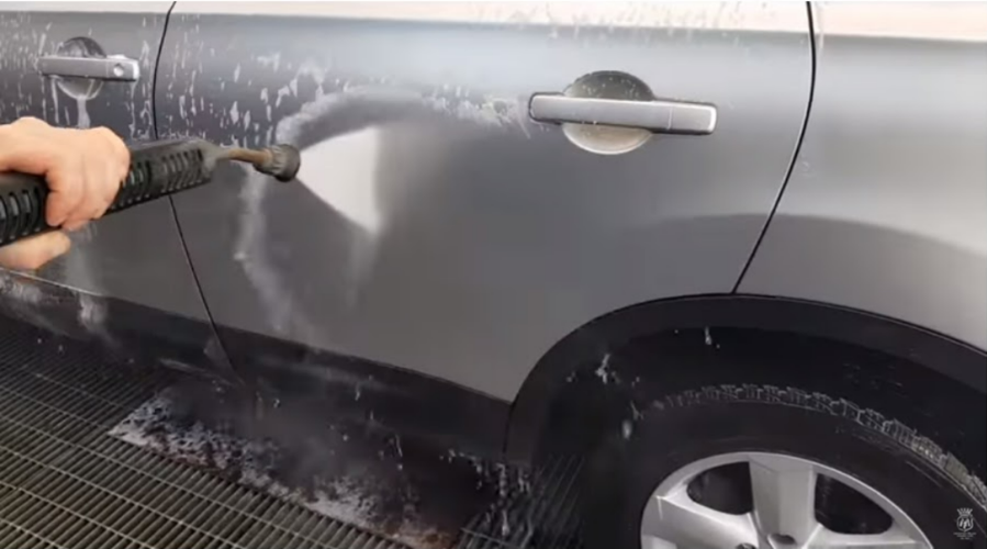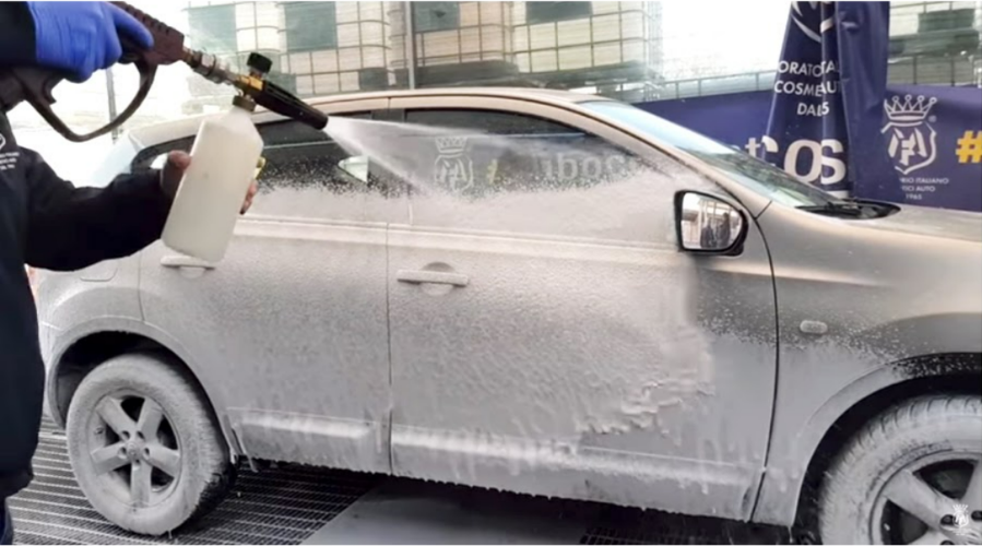Remove the spray gun, connect it to the foam gun and coat the entire vehicle with foam again.