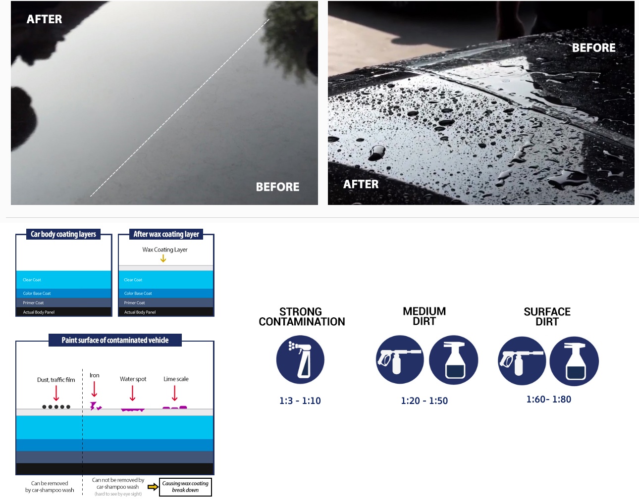 Cząsteczki wapienia, które osadzają się na karoserii w wyniku niedokładnego suszenia, letnich burz lub kwaśnych deszczy, drastycznie zmniejszają efekt perlenia. Wszystko dlatego, że ta niewielka ilość zanieczyszczeń mineralnych może być czasami niewidoczna, ale jest główną przyczyną utraty połysku, ponieważ z czasem nawarstwia się i sprawia, że ​​samochód wygląda na matowy. Efekt ten jest szczególnie widoczny na czarnych samochodach.
